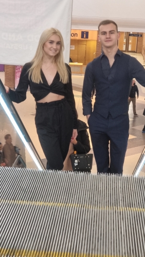 [Dmytro] Our teachers are Professional dancers Marko Ilich and Yuliya Sadovskaya who also compete today. We are a part of a big team called Sparta Team. It is like a big family. We train in Kharkiv. We have many dancers, many couples, it is perfect. We all have good results.